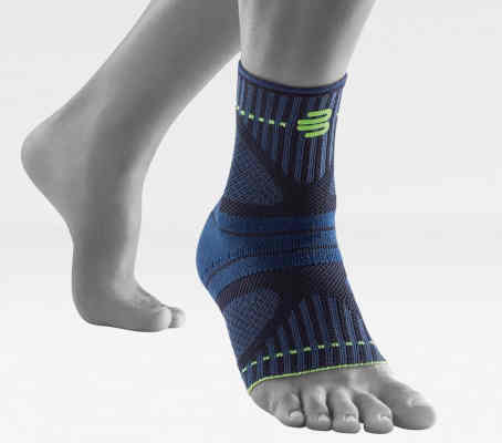 Die leichte Knöchelbandage versorgt das Sprunggelenk mit einer anregenden Kompression. Es wird nicht nur die Durchblutung gesteigert, sondern auch die Propriozeption. Das gibt dem Gelenk Sicherheit und hilft Fehlbelastungen vorzubeugen, ohne den Bewegungsumfang einzuschränken.